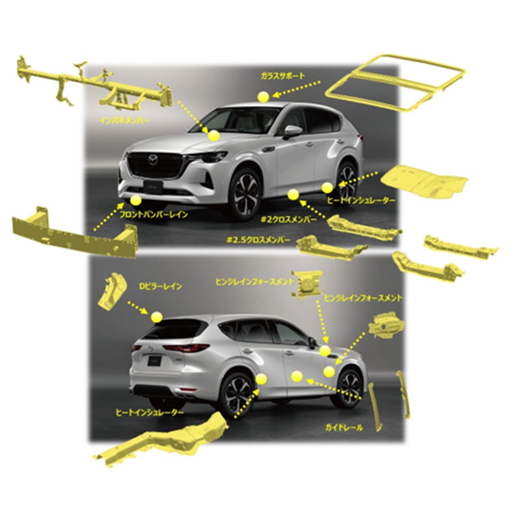 マツダ株式会社より、ラージ商品群第一弾となるクロスオーバーSUV「CX-60」の量産開始が発表されました。同モデルには、アルミ製のバンパーレインが採用されております。