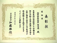 7月17日、島根県松江地方合同庁舎にて表彰式が行われ島根労働局長様より奨励賞を授与されました。