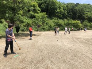 当日は、新緑薫るさわやかな青空の下、新入社員を含め総勢113名が参加し、グラウンドゴルフとテニスを行いました。好プレイには、チーム全員で喜び、和気あいあいとした時間を過ごすことができました。