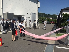 6月1日より3日間、広島地区(本社・大州工場・可部工場)にて、約90名の社員が消火器・消火栓の取扱訓練に参加しました。業者の方より、消火器の使用方法を説明して頂いた後、消火器を用いて操作体験を行いました。