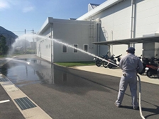 6月1日より3日間、広島地区(本社・大州工場・可部工場)にて、約90名の社員が消火器・消火栓の取扱訓練に参加しました。業者の方より、消火器の使用方法を説明して頂いた後、消火器を用いて操作体験を行いました。