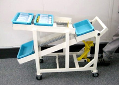 ペ ダルを踏むという動作一つで、空の部品容器を取り除き返却できる「陽気(容器)に帰る」を出品。製造現場の皆が知恵を出し、手を汚し、動力源を活用し、機 構を駆使する。自ら考え、より良い改善活動を行なうことにより知識・技能の向上に繋げることで、更に活性化した集団へと成長していきます。