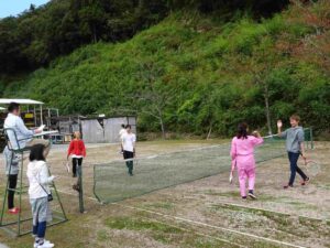 全工場から社員や社員の家族が参加し、工場の垣根を越えたチームで協力し合ってグランドゴルフやテニスを行いました。競技の後には、美味しい島根和牛や豚汁をいただきながら自然と会話も弾んでいました。