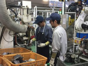 インターンシップは2~3日間の日程を組んでおり、職場の安全教育の後、溶接作業や産業用ロボットの操作の実践、