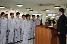 これから新入社員は10日間にわたって社会人の基礎マナー講座や安全・品質教育、現場での溶接教育などを行い、その後各部署へ配属されます。(技術系は5月末まで各工場にて現場実習を行った後、配属)